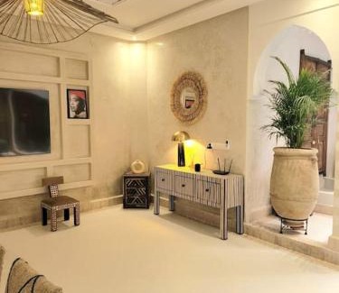 Providing a rooftop pool and free Wifi, Riad Isahiac avec piscine en exclusivité offers accommodations in the center of Marrakesh. The property is close to several well-known attractions, a 8-minute walk from Mouassine Museum, 0.6 miles from Djemaa El Fna, and a 17-minute walk from Koutoubia. Bahia Palace is 1.5 miles from the vacation home and Majorelle Gardens is 1.8 miles away. With direct access to a patio, the air-conditioned vacation home consists of 5 bedrooms. Offering a terrace with pool views, this vacation home also features a satellite flat-screen TV, a well-equipped kitchen with an oven, a microwave, and a toaster, as well as 5 bathrooms with a shower and a hair dryer. The property has an outdoor dining area. The vacation home offers a continental or halal breakfast. Popular points of interest near Riad Isahiac avec piscine en exclusivité include The Orientalist Museum of Marrakech, Boucharouite Museum, and Le Jardin Secret. Marrakech-Menara Airport is 3.7 miles from the property.