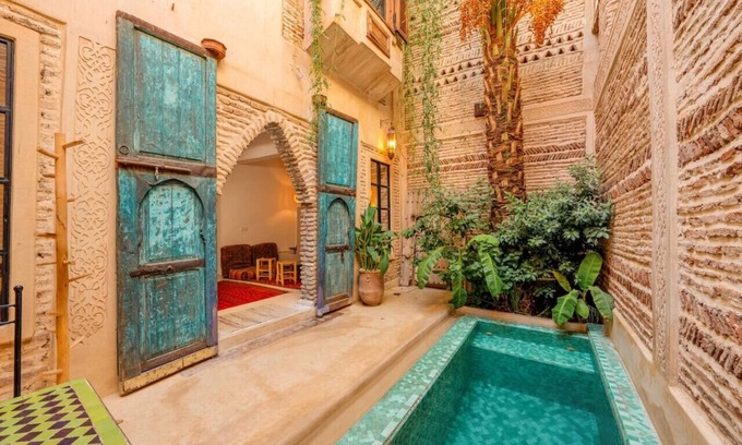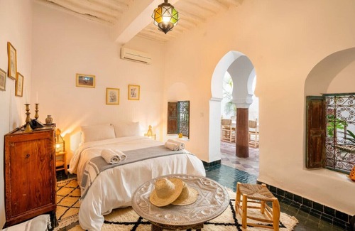 Nestled in Marrakech, this 5-bedroom, 5-bathroom riad brings it all within your reach. Fans of nature and the outdoors will love being 8 minutes by car from Jemaa el-Fnaa and 7 minutes from Cyber Park. Ben Youssef Madrasa is an easy 15-minute walk away and Zaouia El Abassia is also a quick 7-minute walk away.