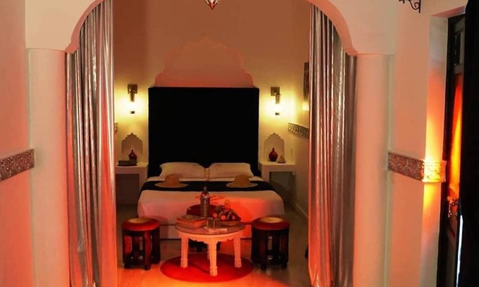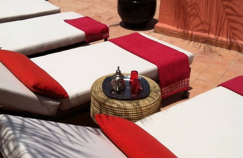 Beautiful riad traditional house in a secure area 10 meters from a royal palace access by taxi and 6 minutes walk from the famous Jemma el Fna. The house is composed of a beautiful shaded terrace on the roofs of the medina several relaxation areas for sunbathing or tea in the shade of a palm tree sipping a fresh fruit juice prepared by Akima a massage room duo you there Expect if you want to make a hamam a qualified person will take care of you. The house consists of 7 rooms with free wifi access.