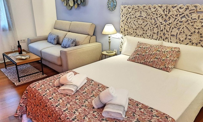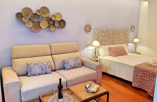 Riad Mezquita de Córdoba 3, has two roomy rooms with queen beds boasting the house's courtyard views. In addition, it has a sofa-bed to comfortably sleep up to two more guests. Fully equipped room to enjoy a pleasant stay. Bedroom area with sofa-bed, 35 '' TV and Nespresso coffee maker. A bathroom with shower-bath and hairdryer included.