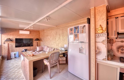 During your stay, you can request the assistance of a cleaning lady and order prepared meals for breakfast, lunch or dinner. Moroccan cuisine is renowned for its flavours. 5 minutes from the Riad you will find pizzerias, small brasseries and restaurants. On the corniche and the Marina, 10mn by car, fabulous restaurants await you.