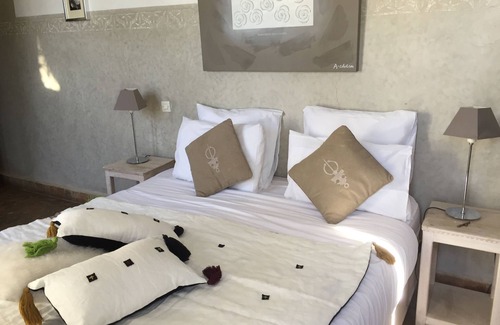 The Riad Princesse Jamila is located in the heart of the Medina of Marrakech Completely restored, we offer you all the comfort of a boutique hotel with the quality of service of a guest house. 5 people at your service for 5 rooms Manager, cleaning lady, cook, masseuse and night watchman will be there, discreet to serve you. The riad offers 3 double bedrooms, one with a mezzanine that can accommodate two children and 2 superior bedrooms, one of which is on the terrace suite with separate bedroom for two additional people. A pool on the terrace, very sunny all day long, a dining room opened by bay windows, a relaxation room, fitness room, hammam, whirlpool, treatment room, patio and three terraces at different levels including two roof top with sunbathing lounge and Moroccan lounge. We offer meals, care, excursions breakfast is offered. The riad is declared, we have the Riad guesthouse approval and therefore all the necessary insurance and security. The Riad is heated and air conditioned, we have two wifi in the Riad and the staff speak French Moroccan and English