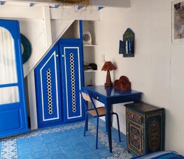 Riad Terre d'Azur is a recently renovated vacation home in the center of Essaouira, a 7-minute walk from Plage d'Essaouira and 3.5 miles from Golf de Mogador. This vacation home offers accommodations with a patio. The vacation home also features free Wifi as well as a paid airport shuttle service. Featuring a terrace and city views, the vacation home includes 3 bedrooms, a living room, satellite flat-screen TV, an equipped kitchen, and 2 bathrooms with a shower. Guests can take in the ambience of the surroundings from an outdoor dining area or keep warm by the fireplace on colder days. The vacation home offers bed linen, towels, and daily room service. Continental and vegetarian breakfast options with local specialities, pancakes, and juice are available. A car rental service is available at the vacation home. Essaouira Mogador Airport is 10 miles from the property.