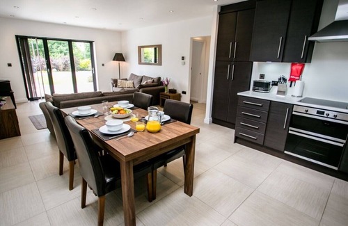 Outside, Ribble overlooks Oakdean’s private gardens. Bi-folding doors open onto a peaceful patio with a view of the surrounding woodland. In summer months, the barbecue and outside dining area make this an idyllic spot for sunny afternoons and balmy evenings.