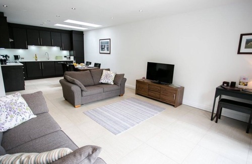 The two bedrooms – one twin and one double – are each equipped with en-suites – one with a half bath and overhead shower, and the other with a double shower. There is also a sofa bed in the living room to accommodate extra guests. A modern kitchen houses plenty of appliances, including a washer/dryer, microwave, dishwasher and fridge/freezer. Keen cooks can take advantage of the fully equipped kitchen and the extendable dining table that comfortably seats six. A lounge area provides a place for relaxation, while the WiFi and flat screen TV fitted with Freeview, and DVD player will keep guests entertained. All the family can make themselves at home here.