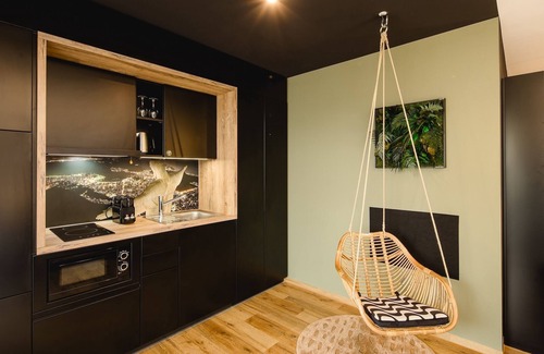 Each apartment provides a kitchenette with a refrigerator, a stovetop, a microwave, and a dishwasher. For a bit of entertainment, guests will find a TV with satellite channels and Netflix, and other amenities include free WiFi and a rainfall shower. Weekly housekeeping is available.
