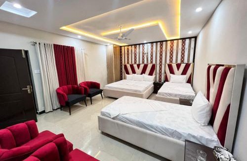 Located in Islamabad, within 4.8 miles of Shah Faisal Mosque and 10 miles of Lake View Park, Rising Millat hotel G-9 provides accommodations with a shared lounge as well as free private parking for guests who drive. This 1-star hotel offers a shared kitchen and room service. The rooms have a balcony with views of the mountain. At the hotel each room comes with air conditioning, a seating area, a flat-screen TV with satellite channels, a kitchen, a dining area, a safety deposit box and a private bathroom with a shower, free toiletries and slippers. Rising Millat hotel G-9 has certain rooms with city views, and the rooms come with a terrace. Guest rooms in the accommodation are equipped with bathrobes and a computer. Guests at Rising Millat hotel G-9 can enjoy a halal breakfast. Ayūb National Park is 14 miles from the hotel, while Taxila Museum is 18 miles away. Islamabad International Airport is 18 miles from the property.