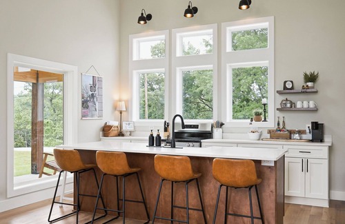 Peaceful and family-friendly, the Rocky River Cottage offers serene farm views, floor-to-ceiling windows, and plenty of space to relax or play. Enjoy multiple outdoor seating options, a cozy stone fireplace, and access to a community fishing dock and pavilion a short distance away. The 2 car garage is pup friendly where they can enjoy the conditioned space, doggy door, and fenced enclosure. Kick back, soak in the views, and unwind in this charming countryside retreat with Rocky River access.