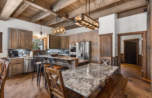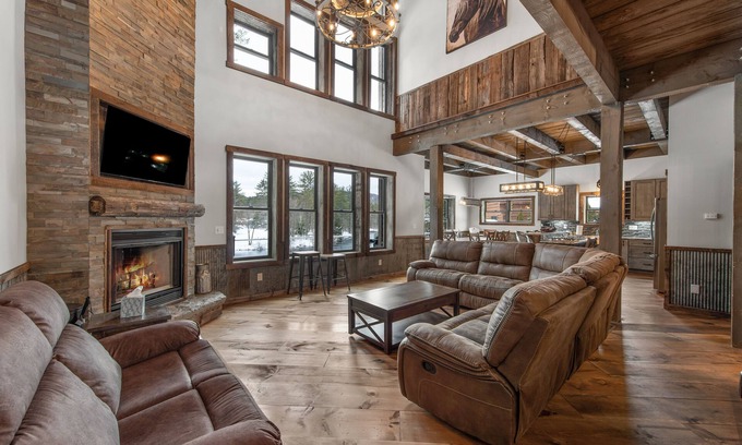 Band new rustic Adirondack lodge nestled along the banks of the beautiful Schroon River just minutes from Lake George Village. Spacious 6-bedroom 4 full bath with Bunk/ game room. Gourmet kitchen with 5 burner gas cooktop, double wall ovens. Cozy up in front of the great room fireplace. Enjoy your morning coffee on the back deck overlooking The Schroon River while listening to the babbling brook. After a long day on the slopes of Gore Mountain come back and relax in the hot tub that runs all year. Take a dip in the saltwater pool (during the summer months) catch some rays on the tanning ledge while enjoying the river views. Spend the day canoeing and fishing on the well-stocked river. Enjoy family time and smores on the patio around the built in firepit.
