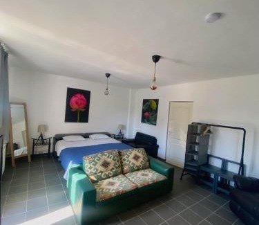 BathroomGuest bathroom, Toilet paper, Bathtub, Walk-in shower, Shower, TowelsGeneralTile/Marble floor, Heating, Iron, Key access, Carpeted, Fan, Smoke Alarm, Trash cans, SoundproofOutdoorsBalconyKitchenHigh chair, Dishwasher, Electric kettle, Cleaning products, Coffee machine, Microwave, Kitchenware, Stovetop, Kitchen, Refrigerator, Washing machine, Dining table, OvenLiving AreaSitting area, Dining areaMedia & TechnologyMobile hotspot device, Flat-screen TVViewGarden view, Quiet street view, View, Inner courtyard viewBedroomLinens, Alarm clock, Wardrobe or closetAccessibilityEntire unit located on ground floorBuilding CharacteristicsDetachedRoom AmenitiesSocket near the bed, Non-feather pillow, Clothes rack, Drying rack for clothingPool and SpaPool towels |