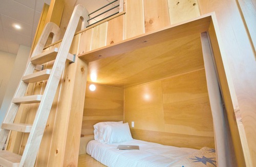 Our private lodge room features our "must stay in" hand-crafted glamping pods, expansive windows opening to the mountain and Warrior Ridge, and high speed wifi. Pods feature secure storage, luggage space, privacy curtains, convenient outlets, custom shelving, wall mounted lighting, and Egyptian cotton sheets. A charcoal grill, private campfire area, and outdoor seating is available steps outside of the main lodge room.