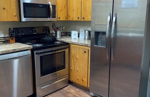 You are on the Deschutes river. Your back door opens to a deck and then to the Deschutes river, there is a dock right outside your back door for access to the river. The townhome is newly remodeled with everything brand new from foundation to ceilings, all of the appliances. Beds are brand new all of the linens absolutely everything in the house is brand new. You will want for nothing when you stay in this townhome it's extremely comfortable & stylish. Winter time come Ski the mountain and play in the snow. Summer time Come float the river kick back and relax. Our back yard deck leads you to the dock and river access for you kayak, canoe our float equipment. There are walking and bike paved through River Meadows our neighborhood resort. Tennis and pickle ball courts, a pool and play ground, exercise room. Extra guest parking just across form our driveway. walk out your front door and go to the pool. Walk off your back deck to get to the river. Awesome location for a great Vacation.