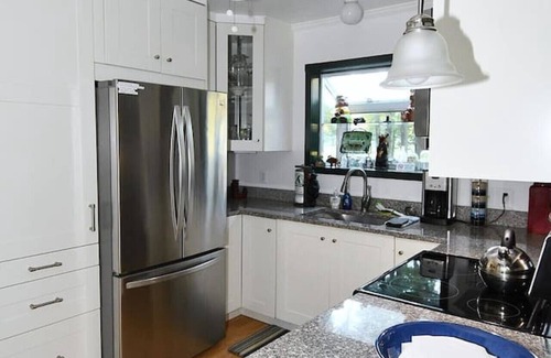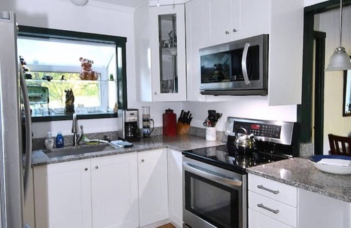 Light up the wood stove and settle into the warmth when the evening chill rolls in. The fully equipped kitchen makes home-cooked meals a breeze, whether making pancakes in the morning or a hearty dinner after a day of adventure.
