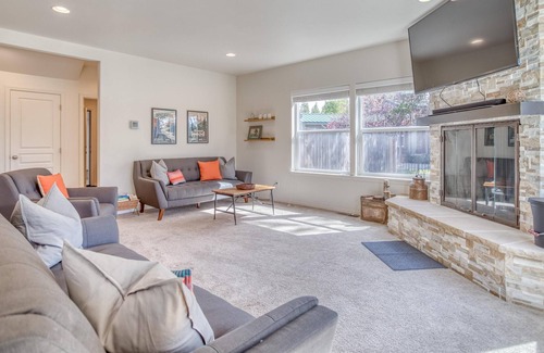 Located next to a golf course, this 4-bedroom, 2.5-bathroom vacation home lets you experience it all in Bend. Fans of nature and the outdoors will love being 9 minutes by foot from Deschutes River and 18 minutes by car from Newberry National Volcanic Monument. With convenient onsite parking, you'll be ready to make the 12-minute drive to Sunriver Resort Golf Course or the 15-minute drive to Sunriver Nature Center.
