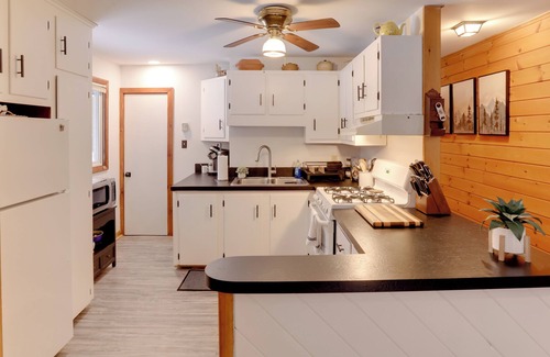 Retreat to the Adirondack Mountains and stay at this Schroon Lake vacation rental! ‘The Black Pine’ is a 3-bedroom, 1-bath cabin with an open-concept living area, a well-stocked kitchen, and a riverfront outdoor space. Nestled just steps from the cabin and surrounded by the beauty of the Adirondacks, the hot tub offers the perfect spot to relax after a day spent hiking the Severance Mt. Trail or boating on Schroon Lake.