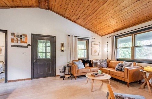 Take a step into mountain country and enjoy the quiet river and awesome outdoor living areas in this raised cabin out in the holler. With private riverfront access and gathering places both indoors and outdoors, this is a great location to spend time indoors cuddled by the fire or outdoors enjoying a game of pool under the house. Enjoy fishing, swimming or tubing in the river and dry off around the outdoor tables while grilling outside. This is an all-season retreat to bond and relax.