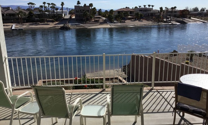 River front home on the Colorado River. Large patio looking over the water, attached large garage, like new 1600 sq ft home with 3 bedrooms ,great room and kitchen looking at the river. See the pictures to appreciate. 12 miles to the first Nevada casino,Avi Resort. Many great golf courses in Region, with snowbird specials. Close to Bullhead City,20 miles, and Laughlin,25 miles, and Lake Havasu one hour away. Las Vegas and Hoover Dam less than 2 hours away.