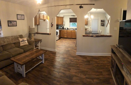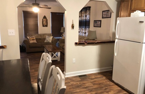 Inside offers a large living area with electric fireplace, three spacious bedrooms (1 full, 1 queen, 1 king), a newly renovated bathroom with washing machine/dryer, and a fully equipped kitchen with all the essential amenities. We offer Dish Networks top 120 package that provides, local channels, sports, etc. We have high speed WIFI by Hughes net. We also have a DVD player at our location with a selection of DVDs so our guests can cozy up and watch movies on those rainy, lazy days.