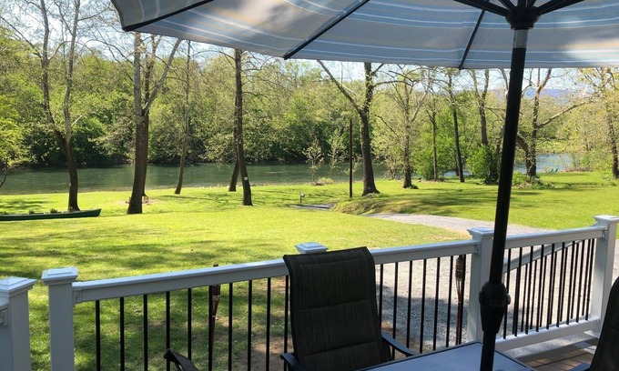 Welcome to Rock N’ Reel Riverfront Cabin! Nestled on the South Fork of the scenic Shenandoah River; This is a dream for both nature lovers and outdoors-men alike. Our cabin offers a private river lot with easy access to the river for our guests to enjoy small mouth bass fishing, swimming, tubing, or just relaxing around the fire pit, soaking in the beautiful panoramic view. Enjoy the 10' x 32' front deck over looking the Shenandoah River. The pictures doesn't do the view any justice.