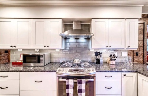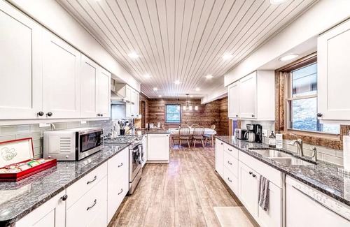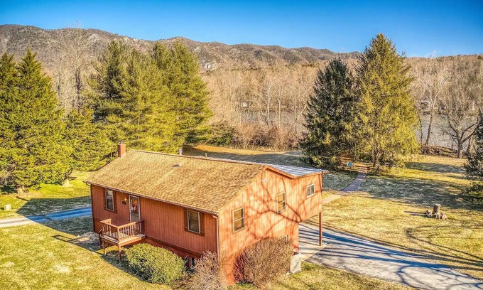 This beautiful cabin is situated right on the beautiful Shenandoah River - private river access right in the backyard! Whether you are looking to just relax by the river by the fire, listening to the river in the hot tub, or looking to be active and use the provided kayaks or canoes to float the river, or enjoy the many nearby hikes - the Peaceful River Retreat has something for everyone! Featuring 3 bedrooms (2 king beds, 2 double beds, and couch - all very comfortable!), 2 luxury bathrooms, updated gourmet kitchen, and a lovely screened porch with bench swing (perfect for enjoying river views/sounds on those beautiful mornings and evenings) - this retreat has it all! The hot tub is located steps away from the main house in the spa, situated right by the river. It is perfect for relaxing after a long day enjoying the mountains and trails, or warming up as you listen to the river stream and nature. Imagine being able to see endless amount of stars in the sky with no distractions. The river retreat allows you to be very distant from others, unplug, and stretch out. Dogs are welcome! They will surely enjoy running around in the open green space and splashing around in the river. Relax by the fire pit and make some s'mores (chairs provided). Looking for some friendly competition? Enjoy countless board games and corn hole! The inside fireplace will warm up those chilly nights. Large dining table for family meals, and grill is available for use. Relax and enjoy your morning coffee, evening beverage, or meals on the spacious screened porch overlooking the river. Also, check out the many local hiking trails, biking trails, caverns, wineries, dining options, and downtown Luray is just 15 minutes away! Local attractions information is at the home for you to refer to and plan your adventures. Enjoy your time relaxing at the Peaceful River Retreat!