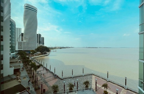 Ubicada en el mejor sector turístico de Guayaquil, Puerto Santa Ana con seguridad las 24 horas y junto al río Guayas, Malecón 2000, las Peñas, cerca del centro de la ciudad y a 10 minutos del aeropuerto.