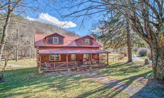 Terrapin Lodge sits on over 2 acres of land, where Crawford Creek meets the trout-filled Pigeon River! Blue Ridge Parkway, Pisgah Forest Waterfalls/Trails: Looking Glass, Moore's Cove, Sliding Rock, Skinny Dip, Graveyard Falls, Cradle of the Forestry, and more are very close by. Adventure awaits you in our mountain oasis! Or relax at the cabin, listening to the tranquil sounds of the fresh water going by. Very close to Waynesville and Asheville! Pets: Dogs only, fee per dog per stay, limit 2 per stay. House is in a neighborhood and their are neighbors