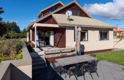 Great for two families. Extra large beds. Beautiful views over reserve to Tongariro River and River Trail. Access to Trail and River is 40-50 meters across reserve.