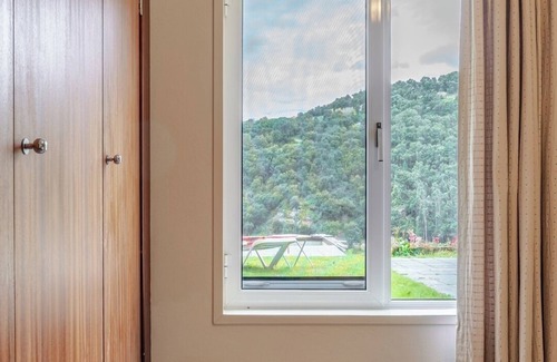 The space is designed to accommodate up to six guests, with each bedroom featuring two single beds for added flexibility. The house boasts three bathrooms, ensuring privacy and convenience for all guests. The living area is warm and inviting, with a cozy fireplace and large windows that frame the spectacular river views. The fully equipped kitchen and spacious dining area make it easy to prepare and enjoy meals together, whether indoors or alfresco on the terrace. This property is perfect for relaxation with an infinity pool, sun loungers, and a beautifully maintained garden.