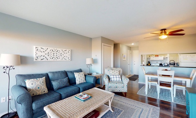 Spend sunny fun-filled days on the water before returning to the condo to enjoy all its comforts. The interior boasts quality furnishings, sleek appliances, and a beautifully outfitted bedroom. Prepare meals together in the well-appointed kitchen, gather in the living room for a movie night, or relax on the patio. No matter how you choose to spend your time, memories are sure to be made.