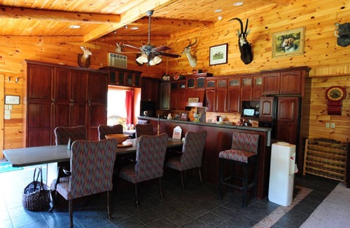 The Entertainment Lodge has 2 bedrooms which includes a gorgeous bath with a steam shower, a large kitchen, pool table, living area with fireplace. The additional suite in the entertainment lodge includes a private bedroom with a queen size bed and the open suite area has one queen bed, one double bed and a full kitchen. This suite shares a bathroom.