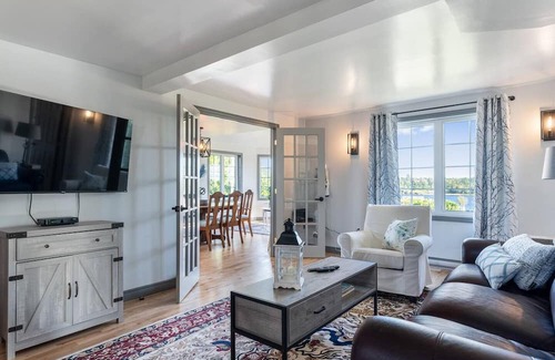 Welcome to your perfect, private, cozy, newly renovated, four season, modern farmhouse, for a large family, or two, or group. King bed on main level. This home overlooks the Kouchibouguacis River, where you can sea-doo, canoe, kayak or boat. The entertainers deck stairs lead you to the custom made fire pit, get your s’mores & hot chocolate ready & star gaze. The view of the river is stunning in every season, you can not go wrong no matter what time of year you decide to take you vacation, weekend getaway or family get together.