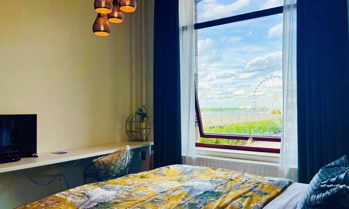 Stay in the heart of the historical city of Antwerp. Set in a monumental 19th century building “Entrepôt du Congo”. Overlooking the Schelde River, the Cathedral, The Ferris Wheel “The View” and a minutes walk away from all main attractions in Antwerp. Shopping, wine and dine all around the corner.