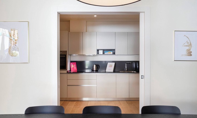 GeneralElectric kettle, Number of bedrooms - 2, Dishwasher, Shower only, Number of living rooms 1, Number of bathrooms - 2, Private bathroom, Espresso maker, Freezer, Balcony, Oven, Bed count maximum 3, Bed count minimum 3 |