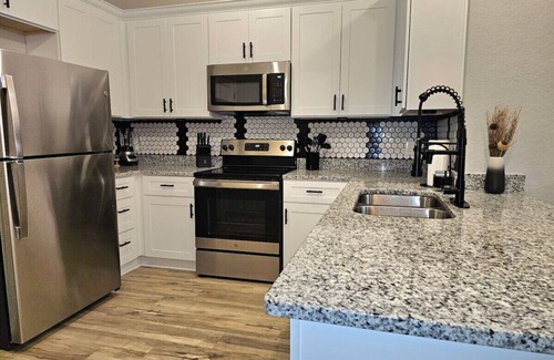 Our home is spaciously stocked, with all of your basic needs, to include all kitchen appliances, amenities and essentials. The Master bedroom houses a queen size remote-controlled electric platform bed, a 55-inch, HD Smart Samsung TV with remote, and an awesome remote controlled celling fan. The Bedroom window allows natural light in beautifully; however, you can choose to sleep in late with room darkening curtains. This master bedroom has its own private bathroom. The bathroom is equipped with a bidet, the coolest Bluetooth lighting system, and is stocked with all of your basic toiletries, hand soap, shampoo, conditioner, body wash, bath towels, etc.