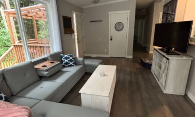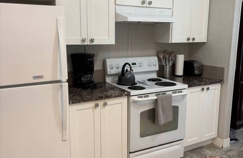 Spacious fully equipped home that will fit the whole family comfortably. Close to the hwy for easy access for driving or public transit but very private and quiet at the same time. 2 min walk from the famous sharkys fish and chips. Pretty much right next to the golf course. The beaches, walking/biking trails, gas station and geocery store only a few minutes drive away. Lots of yard games and some indoor activities. This place is the perfect get away!!