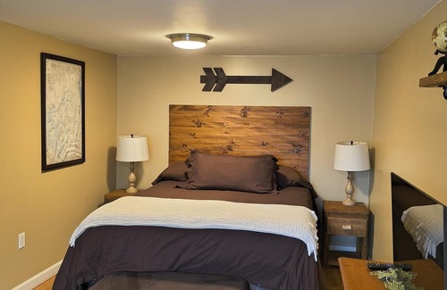 GeneralNumber of bedrooms - 1, Toilet paper, Bathtub only, Mountain view, Espresso maker, Shampoo, Bed count minimum 1, WiFi (surcharge), Toaster, Bed sheets provided, Blackout drapes/curtains, Hair dryer, Visual fire alarm, Kitchenette, Microwave, Number of bathrooms - 1.0, Pets not allowed, Laptop-friendly workspace, Towels provided, Soap, Free toiletries, Flat-panel TV, Streaming services, Cookware, dishware, and utensils, Heating, Cleaning supplies, Bed count maximum 1 |