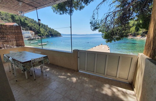 House is placed in bay Pelinovik, near village Bogomolje.The house in the bay is located on the beach. House has two floors and has a total 65m2. On the first floor has a kitchen and a living room, on the upper floor are the bedrooms. On the second floor there are 3 double rooms and a bethroom with shower.