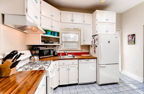 This house has a great feel with large rooms with high ceilings, some with skylights, hardwood floors through out, all new windows, Central Air Conditioning, and a new 65" Smart TV in the Living Room, 52" Smart TV in the 3rd bedroom. The entire house is filled with original pieces of art as well of a collection of Rock n Roll Art and concert posters, pieces brought back from Mexico and travels around the world. Kitchen is a fun spot with breakfast bar seating, butcher block counters, and an exterior door that accesses the patio for dining and grilling. Great for a group of friends or family. The feel/vibe of this house puts you at ease and relaxed. It is perfect for a Vacation Rental. Its location makes it perfect for someone visiting Denver and wanting to explore downtown and the surrounding neighborhoods such as Tennyson St and Highlands, and LoHi while at the same time giving them easy access to the mountains for all the activities they provide such as skiing, hiking, wine/food festivals, and of course concerts. Easy commute from the airport as well - straight shot and one exit and one turn and your here. Honestly, the best location in town and the hottest neighborhood if a local and even better for guests wanting to know where the locals hang out, shop, eat, and drink. Foodie paradise as well as a Beer connoisseur's dream with multiple breweries. Walking distance to everything - 2 of Denver's best parks, groceries, breweries, restaurants, shopping, Golf Course. The yard is very private with a 6 foot privacy fence and a fun yard with great outdoor lighting for hanging out. Great front porch for morning coffee or lazy summer afternoons