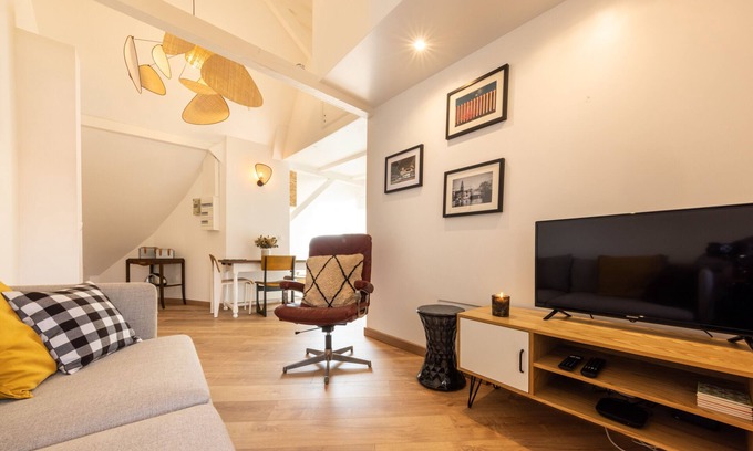 The accommodation is private for your entire stay. You will enjoy a chic, modern and warm decoration, with equipment guaranteeing you maximum comfort; as well as an equipped kitchen. Located on the ground floor of a building, this flat is ideal for couples and professionals.