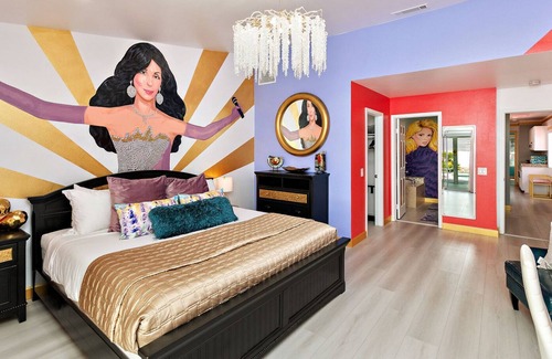This resort-style home is located in the world-famous community of Bermuda Dunes and is perfect for all your vacation needs. It's where style and sophistication meet entertainment and fun. Treat yourself to the perfect vacation rental close to casinos, golf, and easy access to the freeway. Rock N Royalty is a stunning four-bedroom, private pool and spa, offering 2,040 square feet of luxury living. Within the living room, you will experience the perfect area for entertaining. Enjoy the murals featuring legendary ladies and impress your friends with your hidden talent in Mixology or take in a roaring fire while creating new memories on your vacation.