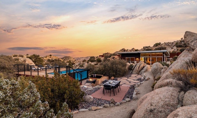 Best-rates for the Yucca Valley house starts from $822 per night with includes Balcony/Terrace, Bedding/Linens, Wellness Facilities, Barbecue/Outdoor Cooking, Internet, Pet Friendly, TV, Private Pool, Fireplace/Heating, Child Friendly, Kitchen, Parking, Pool, Hot Tub, Laundry, Air Conditioner, Security/Safety, Guest Services, Entertainment With all other amenities included. Treehouse Rentals offers a wide range of treehouses, forest homes, cabins, and off-grid retreats, ensuring each traveler discovers their ideal nature getaway—be it a family adventure, a peaceful retreat, or a pet-friendly retreat with the whole group.