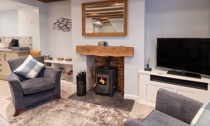 The living areas in this property consist of an open-plan kitchen, dining area and sitting area with an electric oven and hob, microwave, fridge/freezer, washer/dryer, dishwasher, coffee machine, TV and woodburning stove. The bedrooms consist of a ground-floor super king (zip/link), a king-size with TV, and a single. Along with a ground-floor bathroom. Outside there is a rear garden with lawn, furniture, and bike storage, and off-road parking for one car. Sorry, pets and smoking are not permitted. You'll find a shop and a pub in 0.2 miles, and the harbour in 0.6 miles. WiFi, fuel, power, bed linen and towels are all included in the price. Rockfish Cottage is the ideal base to explore the North Yorkshire coastline. Note: The stairs are steep.