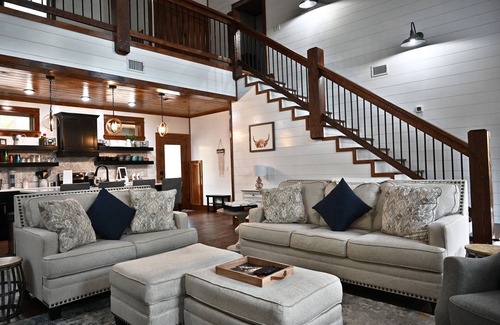Welcome to Rockin Robin, time to escape to this truly secluded getaway. Rocin Robin is a brand new 2 story delight. Once you enter you are welcomed by a custom kitchen with open floor plan to the grand living area. Soaring ceilings with a cozy gas fireplace. On the first floor you will also find the first of two master suites. Off the bedroom and living room there are two entrances to go outside and enjoy nature on the huge deck featuring another fireplace and the hot tub. As you walk up the breathtaking wooden staircase you enter a large loft which overlooks the living area. On the second floor you will find the second master suite. This bedroom has its own private deck for private enjoyment of the outdoors. Surrounded by nature you will want to return to Rockin Robin. Property located 15 min from the north end of Hochatown.