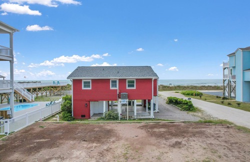 Upstairs you will find the first bedroom featuring a queen bed and the second bedroom featuring two double beds, sharing a hall bathroom with the common areas of the home. Each bedroom is comfortably decorated allowing for each family member to be well rested for the sun-filled vacation day ahead. On the outside ground level enjoy lounging in the hammock with the crashing waves in the background while the kids and furry family member play an intense game of fetch. End the evening by making burgers on the grill (guest responsible for propane) to enjoy together with the warm ocean breeze.