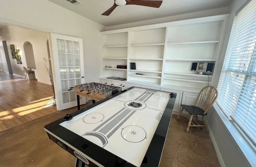 Walk to the Rockwall Harbor, Restaurants, Bars, The Lake, The Cinema & Concerts on the Lake. King, Queen, Trundle bed, Pak & Play, Air Hockey table & 2 car Garage. 3/2/2.