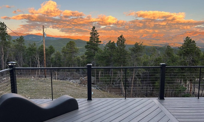This delightful newly constructed house nestled between Nederland and Black Hawk off scenic Hwy 119 and offers 2 cozy bedrooms each with their own outside area to enjoy the spectacular view- 1 king bed and 1 queen bed, perfect for a relaxing stay. With 3 bathrooms featuring 2 bathtubs and heated floors throughout. Guests can unwind in comfort. There is also a wood-burning stove upstairs and a pellet stove downstairs in the partially finished basement. We have a doggie door going out to a kennel for your furry family friends. The additional living room spaces offer a sofa bed and futon, extra room to spread out and relax. Wake up every morning with a view of the continental divide and Eldora ski resort and enjoy the surrounding of National and State parks! This beautiful property is the ideal home base for your trip. We look forward to welcoming you to our place.