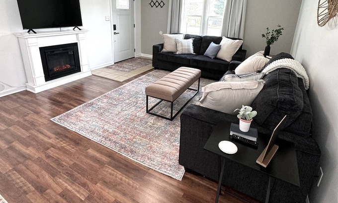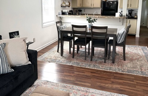 Roger's Place is the perfect spot for large groups! This historic 2-story bungalow offers 6 bedrooms, 2.5 baths & ample free parking. Pets are welcome! Conveniently located on Btown's south side, just a 3.6-mile drive from IU & Downtown. You'll also find yourself mins from the Bloomington Country Club & B-Line Trail. Sleeping-1 king, 1 twin bunk, 2 twin air mattresses, 2 full, & 1 queen. Amenities include a W/D & free WiFi You'll love the cozy atmosphere & abundance of space to enjoy your stay.
