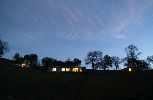 Two roundhouses with a separate living area located near Bishop's Castle in Shropshire that can sleep up to twelve people in four bedrooms.