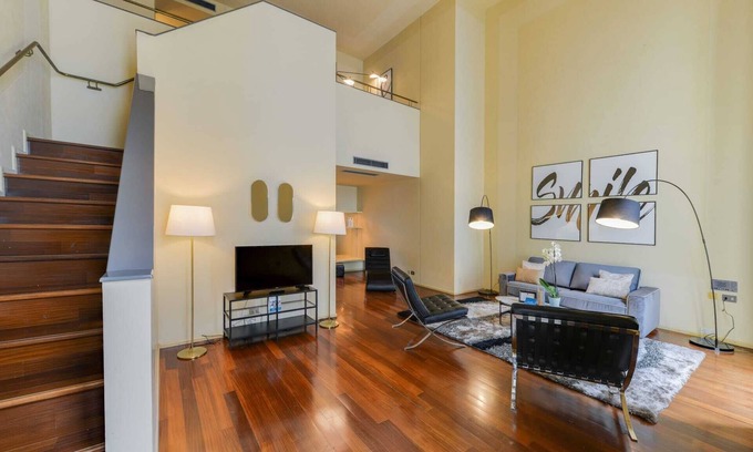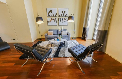 Inspired by the upscale glamour of this stylish city, our local interior designer has blended everyday comforts with Milanese sophistication. Flowing drapery and glimmering metallic accents fill the space with timeless elegance, while eclectic furniture adds a modern touch. Floor-to-ceiling windows let in natural light, and a cosy balcony overlooks the city. A fully equipped kitchen makes at-home dining easy. Premium amenities include free WiFi, cable TV, luxury toiletries, hotel beds and linens, and a Nespresso machine.