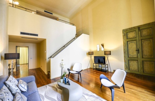 The 2 adjacent Romagnosi 2A and Romagnosi 2B can be turned into a spacious, large apartment of approx 165 sqm by opening an incredibly decorated common door connecting the two living areas creating a comfortable and new glamorous apartment suitable for larger parties. Flowing drapery and glimmering metallic accents fill this spacious apartment with timeless elegance, while eclectic furniture adds a modern touch. Floor-to-ceiling windows let in natural light, and a cozy balcony overlooks the city. A fully equipped kitchen makes at-home dining easy. Premium amenities include free WiFi, cable TV, luxury toiletries, hotel beds and linens, and a Nespresso machine.